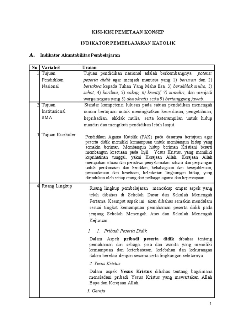 Kisi Kisi Pemetaan Konsep Pend Agama Katholik