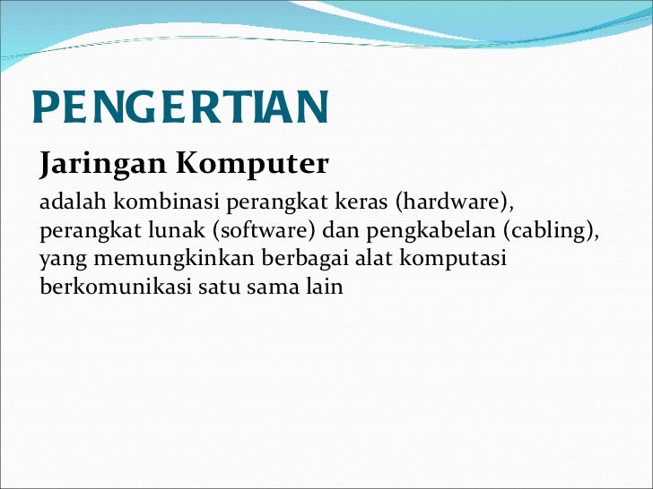 Adalah sekelompok komputer otonom yang saling berhubungan antara yang satu dengan lainnya Menggunakan suatu. Bahan PPT bahasa Indonesia Pertemuan 1 - Pengenalan Jaringan Komputer Pertemuan 2 - Referensi Model OSI Pertemuan 3 - Referensi Model TCP-IP Pertemuan 4 - Metode Akses Pertemuan 5 - Media Transmisi-Wire Pertemuan 6 - Media Transmisi-Wireless Pertemuan 9 - IP Address. Click to allow Flash.